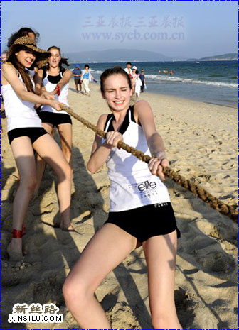 10月27日下午,旖妮的亚龙湾畔,青春与阳光相伴,激情随海风飞扬。参加第25届世界精英模特大赛总决赛的80位各国佳丽小姐在亚龙湾洁白的沙滩上同场“竞技”,尽享三亚阳光的热情,让游客一饱眼福。
