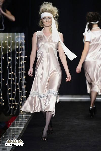 半裸的模特们,或穿着花边上衣,或穿着紧身无吊带胸衣,或穿着体现曲线美的绸缎长袍,或穿着佩斯利娃娃式装,都饰有粉红的网孔和蕾丝在T台下蹦跳,舞动着。