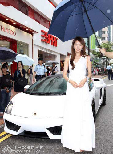近日,林志玲以剪彩嘉宾身份出席Longines香港铜锣湾第三间专门店开幕礼,大会安排志玲乘坐林宝坚尼跑车出场。可惜天公不造美,志玲到场时更下起雨来,由于店外挤满人群,结果要警方到场维持跌序。