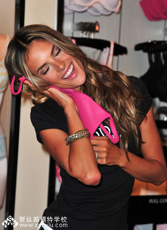 美国纽约当地时间2009年8月11日,亚历山大-安布罗休、玛丽莎-米勒、琳赛-艾林森、Emanuela de Paula四位维多利亚的秘密内衣超模亮相品牌10周年庆典。四大美女齐齐送飞吻,亚历山大-安布罗休更是花痴一般拿起胸罩一阵磨蹭爱不释手。