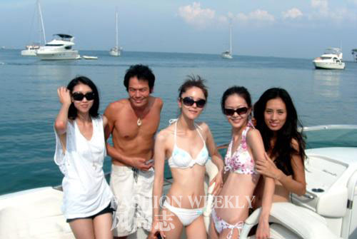 11.哈尔滨新丝路名模赵晨池(左)也是近来走势不错的中国模特,图为她在新加坡油轮上拍外景