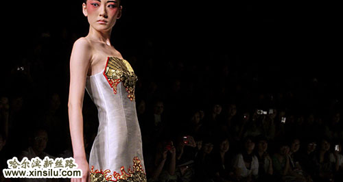 10月26日,模特在2009上海时装周上展示融合京剧视觉元素的复古时装作品“京·玺”。