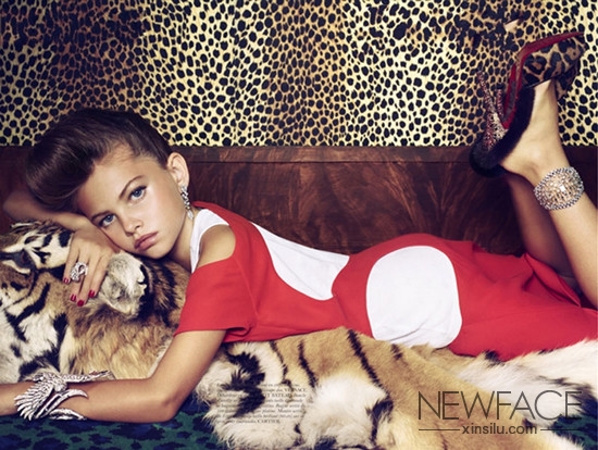 据媒体报道,法国版《Vogue Enfant》的封面上出现了一名新嫩模。和大家印象中天真单纯的孩子不同,封面上这位嫩模斜倚在豹纹枕头上,涂着红唇膏,穿深V上衣及三寸高跟鞋,表情冷酷地摆出诱人姿势,性感程度媲美成年模特。