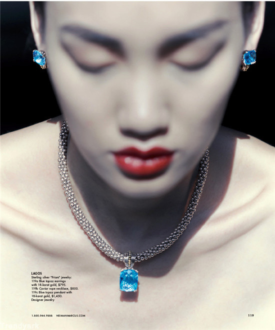 黄晓萌演绎出优雅《Neiman Marcus》杂志精选春夏各品牌推出的蓝色元素设计时装。