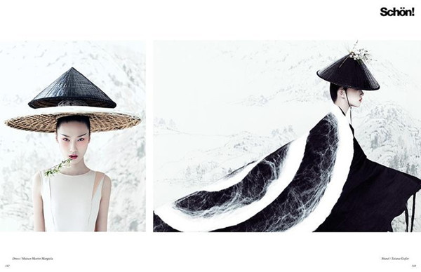 薛冬琪演绎《Schon!》杂志时尚大片,草笠山水间的静好!