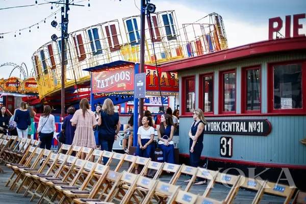2017纽约春夏时装周,Tommy Hilfiger的秀场居然以康尼岛至圣莫妮卡的前港市集为灵感,办了一个游乐嘉年华。