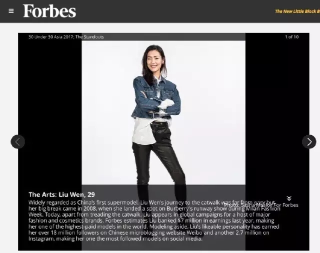 堪比顶级明星的“影响力”助力表姐入围福布斯杂志推出的30 Under 30 Asia 榜单,她还是美国版Bazaar评出的"全球最时髦的150位女性"之一。