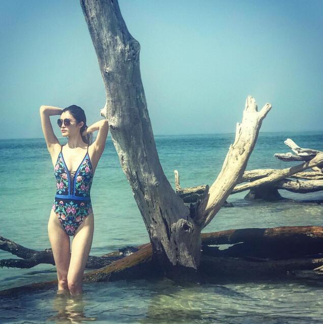 如果是出现在海边,何穗也会用同样的风格和动作来应对,侧着脸抬手整理头发无意的样子很美。