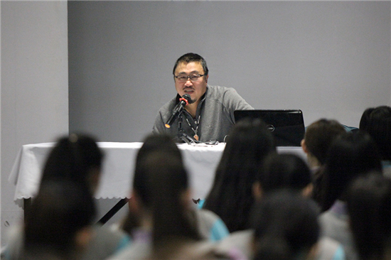 资深摄影师畏冰来到北京新面孔模特学校,为正在我校参加全国高等院校表演专业招生会的模特艺考生们讲解《镜前表现》。
