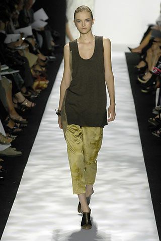 这一季,Vera Wang从古罗马寻找春季设计的灵感。有人说,罗马本身就是当代纽约的贴切比喻。激发她灵感的,与其说是两个社会之间的共同点,不如说是古王朝服饰的流畅线条,还有那些金镀层和金条。不管灵感到底源于何处,这一系列精工细作的设计都是值得褒扬的。