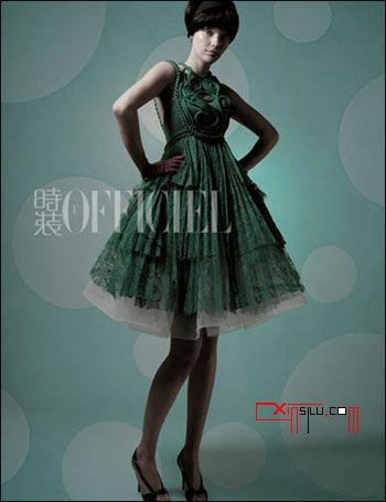 美丽的绿色A型小纱裙雪纺和复古的褶皱都是优雅的标志,在这个季节,她们更应该尽情绽放。美丽解读: