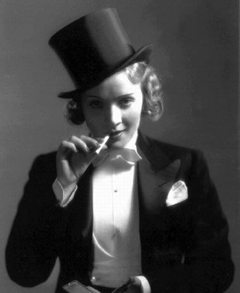 Marlene Dietrich 在《Morocco》中的燕尾服、礼帽造型让整个好莱坞为之震惊。