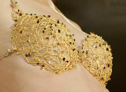 模特展示的黄金内衣由458.66克金丝打造。