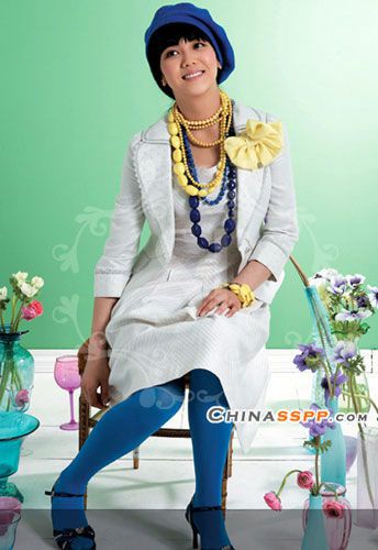 素雅的外套搭配同色系的连衣裙,再加几条醒目的塑料项链,典雅又时尚。