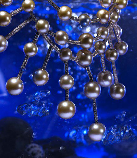 Cartier 黄金项链,配有75颗珍珠,1060颗钻石