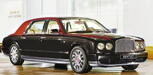 这款限量宾利雅致RL Mulliner隔屏版豪华轿车,每年市场配额只有3辆,而每辆限量版轿车的行李箱内,都嵌有刻上车主名字的特定号码金属标识牌。这款车的设计是以价值988万元的雅致728为原型而改造。车内配备前后车载电话,备有LCD电视屏幕、酒吧柜及冰箱等豪华装备,充分体现了Mulliner独一无二的设计与工艺。