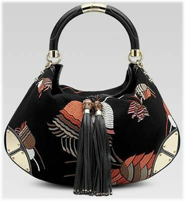 自Gucci创作总监Frida Giannini 设计的Indy Bag系列推出后,已成为品牌的新经典。2007年的秋冬系列,矜贵且手工极精致的Indy Bag采用多种名贵质料。别出心裁的款式包括了色彩斑斓的刺绣Bluebell图案;由蟒蛇皮制作的;在最新版本的GG logo帆布上,配以重新采用Gucci Crest图案的;及以鹿头为设计主题,结合merino羊毛和其他不同皮革。此季的Indy Bag系列中运用鲜艳的色彩,包括黑、枣红、金属灰、铁绣色及无烟煤色。