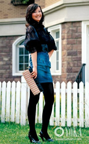 3牛仔裙过于运动,半透明的黑色衬衫过于性感,将两者中和一下就显得都不过分了。