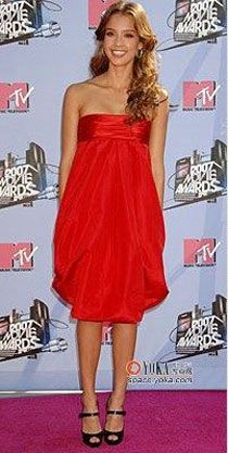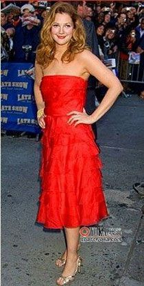 Party风暴的第一波当属马上就要来到的圣诞节啦,如果你想在圣诞Party大出风头,记得千万不要带那些老掉牙的圣诞配饰啦,那些虽然够有节日氛围,但绝不是Party Queen们的首选。不防选一件适合自己肤色的红色裙装,既有节日气氛有很时尚,像巴里摩尔的这件红色Ferragamo长裙一样,我们在选择面料时一定要选择那种质地十分柔软的,裁剪线条非常流畅的,这样配上自然的波浪卷发,一颦一笑,女性的柔媚自然而然就会流露出来,这样的你,谁能不被吸引呢?哦,差点忘啦,金属质感的配饰和红色搭在一起可是绝配哦!