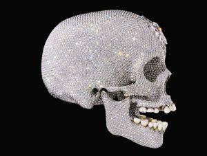 展示的是用白金和钻石制成的与真人头骨形状和大小一样的装饰品“骷髅”...