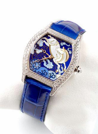 18K黄金TORTUE LM珐琅腕表,手绘镌刻马的图形