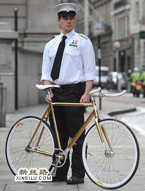 这辆自行车受英国环境运输协会委托定制而成,链条、座位、车把手都和普通自行车的一样,不过表面却镀上了24克拉的黄金。由于在英国,售价超过4000英镑的自行车都不能享受保险“待遇”,因此购买这辆自行车的人还必须雇一位“保镖”,在公共场合负责看管。