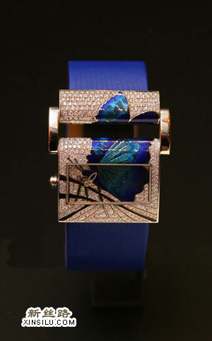 蝴蝶图案珐琅表 表壳镶衬钻石(约重1.8克拉)