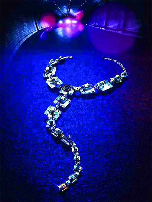施华洛世奇Swarovski2008秋冬全新主题「都市夜影」创作灵感来源于黑夜女神五光十色的夜生活。设计中混合配搭及重新排列各种水晶元素,融入崭新的紫红、蓝光及灰色调,将都市生活多采多姿的神秘魅力,展现于当今时尚配饰,让我们感受整个城市的跃动脉搏,体验探索不同风格的旅程。施华洛世奇通过领先的切割技术和崭新的设计理念,全新演绎各有特色的精彩造型,各式各样的都市及情感体验,艺术、设计及音乐的完美融合。