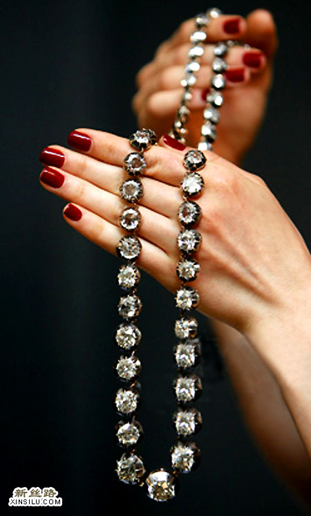 3,世界上最贵的项链:价值942000美元 下面这款55卡钻石项链,市值约942000美元,于2008年6月在英国伦敦被拍卖,被誉为世上最贵的钻石项链。