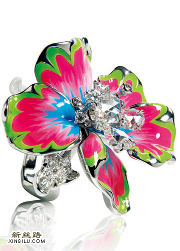 奔放的花朵浸染馥郁的色彩,在各色宝石的点缀下,洋溢着浪漫主义的缤纷与妩媚。
