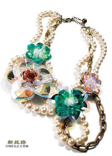 饰花朵串珠项链 Lanvin缀亮片高跟鱼嘴鞋 Miu Miu
