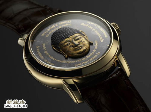 以日本宗教佛像面具为表盘的腕表散发出如皓月般温柔与详和的光辉。面具仿佛代表着阿弥陀如来,含有“无量光”或是“无量寿”之意。据说,这尊佛是五大智慧佛陀之一,专责接引寿缘尽后的信众前往另一个世界。