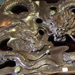 这款砚名曰“九龙至尊”,砚面石质温润细腻,手感十分舒服。砚很大,长196厘米,宽116厘米,厚15厘米。墨黑色的砚面上,有大大小小的淡绿色的圆点,很奇特。介绍說,这就是石眼,越多越珍贵。这个砚居然有229个之多,是目前苴却砚中最多的。