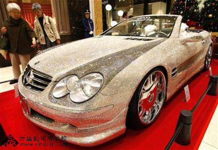 一台奔驰SL600系列豪华轿车,车身缀有30万颗施华洛世奇水晶