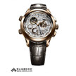 表盘:镀金表盘,9时位置小秒针盘,3、6时位置分别为30分钟、12小时计时盘,4时半位置日历显示,红色中央计时秒针