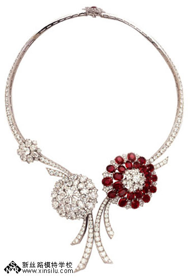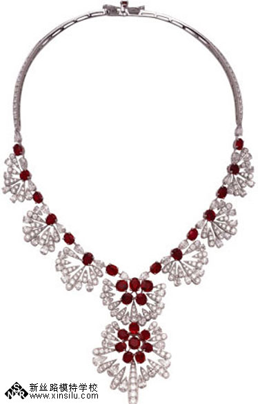 Jazz,白k金镶嵌圆形及梨形钻石连28颗卵形缅甸红宝石(30.34克拉)项链Camargo,白K金镶嵌圆形及卵形钻石连25颗卵形缅甸红宝石(29. 08克拉)
