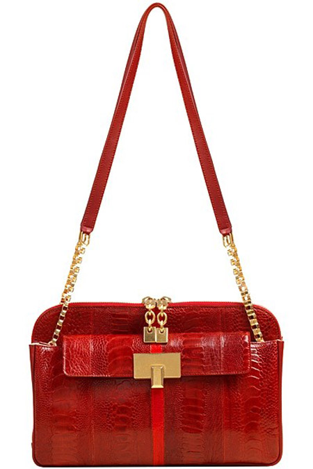 Chloé 2013春夏系列手袋中,大量运用的深红色与米色结合了女性妖娆与素雅的两面,立体皮革的加入让这些款式简单的斜跨包多了一份奢华高贵的气质。各种动物纹的皮革以及色彩的拼接使用更让这些包袋成为各种场合穿搭零撞包的款式。