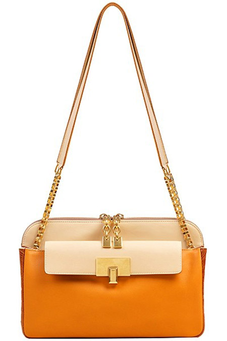 Chloé 2013春夏系列手袋中,大量运用的深红色与米色结合了女性妖娆与素雅的两面,立体皮革的加入让这些款式简单的斜跨包多了一份奢华高贵的气质。