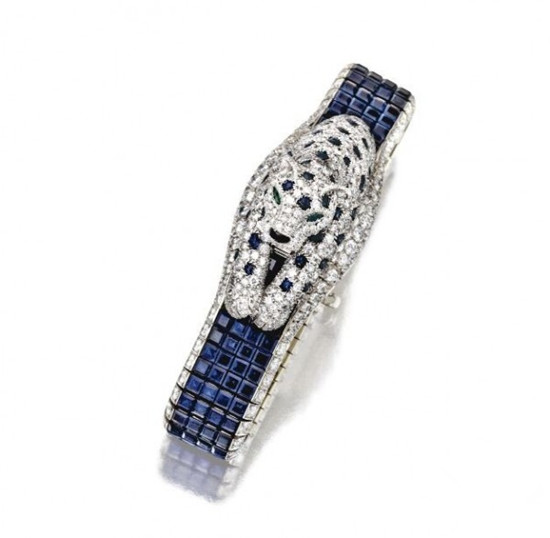 谈到温莎公爵的爱情,一定会想到1949年,卡地亚制作的一颗璀璨的152.35克拉凸圆形如乒乓球一样大的蓝宝石,一只镶钻猎豹高傲地站在蓝宝石上,毛皮上还点缀着凸圆形蓝宝石斑点的钻石胸针,而让她陶醉在此珠宝的女士,便是温莎公爵夫人,猎豹珠宝和他们的爱情故事有着密切联系。