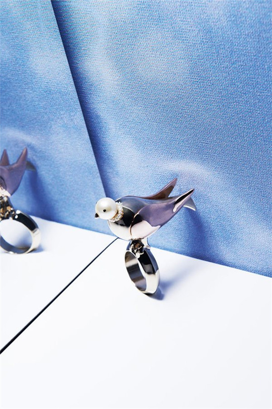 Christian Dior(迪奥)2013秋季配件系列中,同样见得看经典与创新的完美结合,除了别致简约的线条,上头的高跟鞋和指环上头的鸟儿与猫咪等,好像都在歌颂着这一个美丽时代的开始。