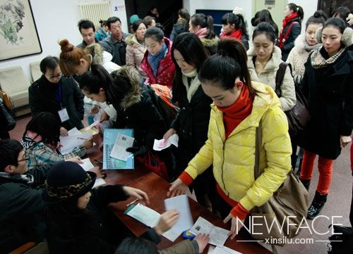 北京服装学院服装表演专业复试的复试现场,由于看榜心切,考场门口早早就站满了等待的考生和家长,与北影、中戏等学校一样,近年来兴起的模特表演本科专业的报考也非常火爆。经过了之前两天的初试,一共有160人进入了复试。