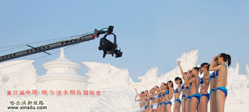 演出一路走来,选手们一个个身着各色比基尼,顶着刺骨的寒冷,面带微笑款款走来。传统的中国的雪雕造型和现代的流行风尚在此刻相遇,东方的意韵和西方的浪漫在银白色的世界里融合,传递着浅淡、朦胧、充满清新活力的美。