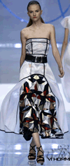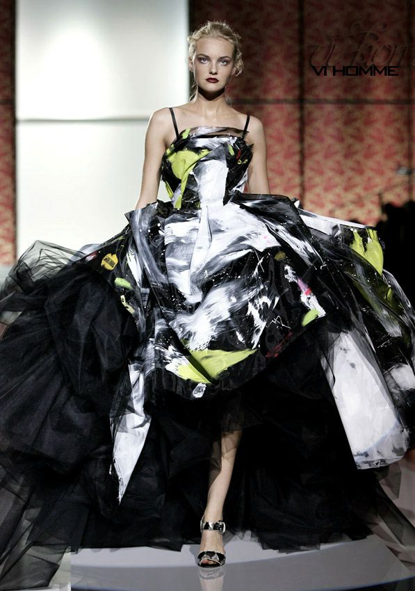 这是最经典的作品,用印花的透明硬纱所做的,具有上世纪50年代幻想的大摆裙。