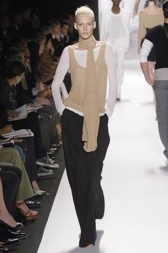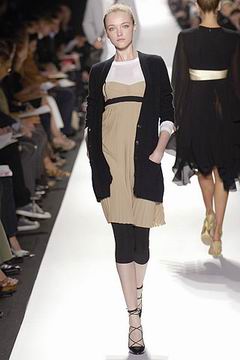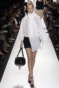 随着Justin Timberlake的 "bring sexy back"背景音乐,Michael Kors展开了2007春夏女装秀,彷佛是从衣橱里轻盈愉悦地舞着登场,在这一季的调色盘里有着裸肤色、黑色和芭蕾粉红、以及闪耀的金属色和轻柔的编织衣料…等等,此外还包括了绑腿的缠绕式鞋款、往上梳的卷发、利落的肩线、和少许的运动衫设计,Kors将80年代的细节设计添入本季时装,尽管整体系列不是这么整齐一致,但还是将品牌本身时髦潇洒的轮廓完整表达。