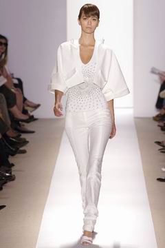 也许是心情使然,本次秀展整体设计Luca Orlandi也运用了最简单派艺术的概念,表现在大量整洁的白、银灰与黑色。Orlandi 似乎想让自己的服装定位在更年轻时髦、有自己个性主张的Hipper族群,于是在本季系列中可以看到许多不规则的层次感,包括无袖上衣被或背心,连身洋装及小礼服,吊带,丝质以及如雨衣材质般的人造纤维…等等比较偏向于休闲运动系列的设计,不过这对以往支持他的时尚迷们应该有小小的失落感,但这无非也是表现Orlandi勇于尝试新方向的一面,值得鼓励和期待。