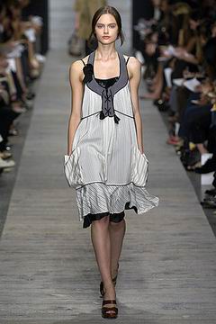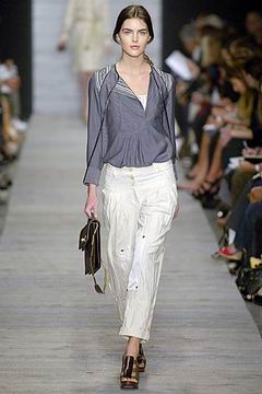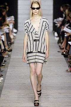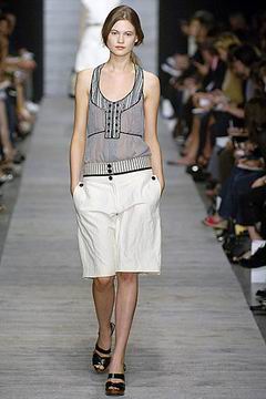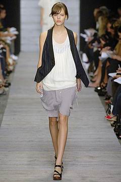 「我要带给女人一种浑然天成的自在与自然」,自己最新的07春夏作品展甫一落幕时,Derek Lam 在后台信心满满地说着。不同于秋冬的严谨风格,设计师在春夏带来的昰洁亮优美、自主独立的都会女性新态度;古罗马风格的束腰短袖上衫、足踝翻边的直筒宽裤、或是及膝的百慕达短裤、甚至被设计师昵称为 "McCardell popover dress" 的丝绸 A-line 波浪上衣下搭宽松长裤等造型,堪称实用性极强/功能性十足的职业女性崭新搭配准则;Derek Lam 非常得意的认为它,重新塑造出东岸女性的自信与强势的特质,却丝毫不减损女人味。