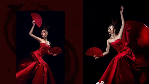 妖而不媚,柔而有骨,在百变中演绎红色风情。