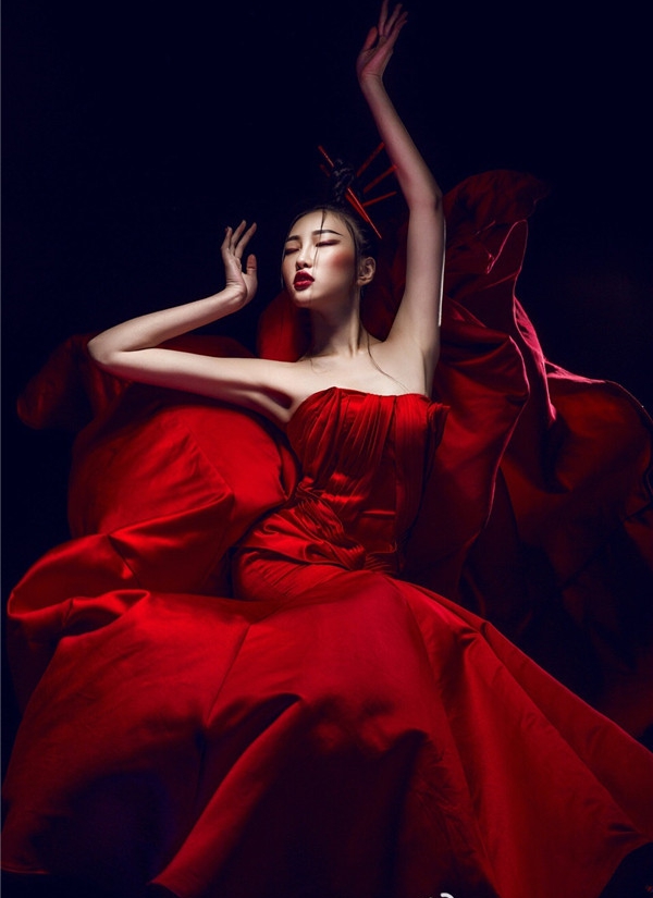 新面孔模特学校优秀学员罗子欣, 提前献上红色春节大片。 妖而不媚,柔而有骨, 在百变中演绎红色风情。