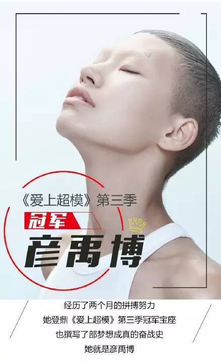 北京新面孔时尚艺术高中毕业的彦禹博,作为独特的中性风模特,一开始就被导师寄予厚望,夸赞其潜力巨大。在《爱上超模3》的舞台上,彦禹博一直都是焦点,观众很喜欢她的自信。但她的自信并不盲目,她的自信来源于平日的努力。而她的专业性和努力精神也得到了队友们的称赞。彦禹博作为模特的造诣和专业性都让人信服。这个年仅19岁的,并不漂亮,甚至可以称之为“丑模”的女孩,在《爱上超模》舞台上,一点点进步。