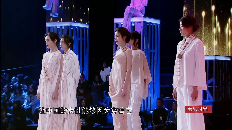 “说到东方旋律我第一时间就想到了《卧虎藏龙》的配乐,竹笛在其中的运用既优美、婉转,有一种‘侠客气质’。”设计师丁又乔通过自己的设计,把“竹笛”元素融入服装创作,令现场观众眼前一亮。